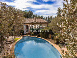 - OLLIOULES - Dans le secteur recherché du Gros Cerveau, dans un cadre campagne et vue dégagée, bastide provençale alliant charme de l'ancien et modernité. Cuisine parfaitement équipée, salon/salle à manger avec cheminée et belle hauteur sous plafond donnant sur terrasse avec vue dégagée sur les collines environnantes. Deux chambres de plain pied, un espace bureau, salle d'eau et wc . A l'étage une suite parentale avec salle d'eau et wc indépendant. Pour dépendances, deux appartements de 35m2 et 42m2 avec accès indépendants. Terrasse couverte avec cuisine d'été et piscine à l'abri des regards. Stationnement aisé sur la parcelle de 2800 m2 en restanque.