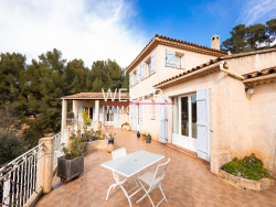 - OLLIOULES - Dans le secteur recherché du Gros Cerveau, dans un cadre campagne et vue dégagée, bastide provençale alliant charme de l'ancien et modernité. Cuisine parfaitement équipée, salon/salle à manger avec cheminée et belle hauteur sous plafond donnant sur terrasse avec vue dégagée sur les collines environnantes. Deux chambres de plain pied, un espace bureau, salle d'eau et wc . A l'étage une suite parentale avec salle d'eau et wc indépendant. Pour dépendances, deux appartements de 35m2 et 42m2 avec accès indépendants. Terrasse couverte avec cuisine d'été et piscine à l'abri des regards. Stationnement aisé sur la parcelle de 2800 m2 en restanque.