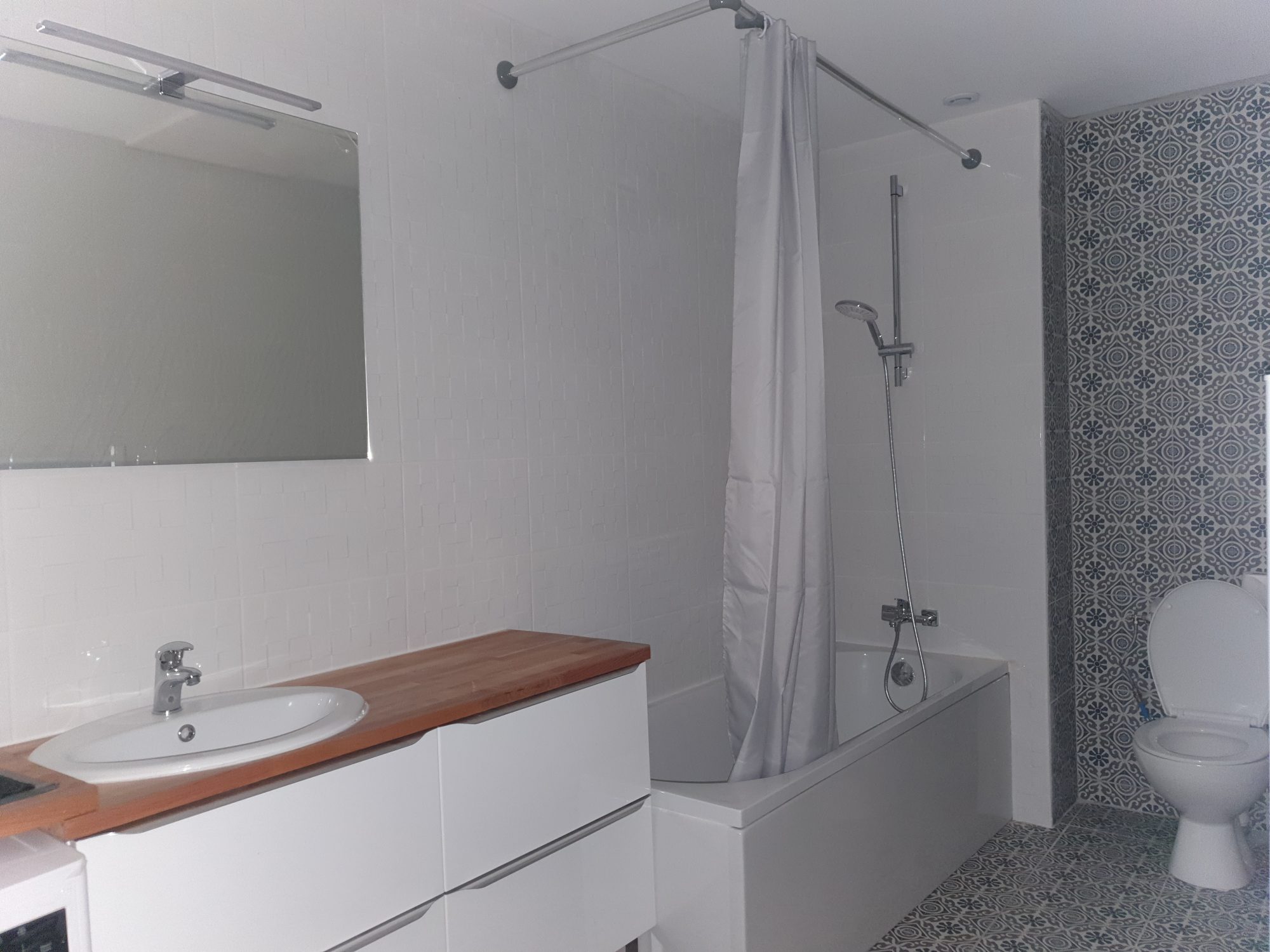 Entrez dans la Pièce de vie avec cuisine ouverte, Donnant sur les 2 chambres et la Salle d'eau traversante menant au Wc.