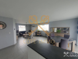 Offrant 105 m2 Habitables SOUS GARANTIE DECENNALE Offrant des prestations de qualité : entièrement équipé en domotique, chauffage au sol Pompe à chaleur, volets électriques, porte garage électrique avec télécommande : Couloir, séjour ouvert sur une cuisine équipée de 45 m2, 2 wc, buanderie, grande salle de bains (baignoire et douche Italienne) meuble vasque, 3 Belles chambres avec placards