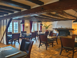 Étage : atmosphère d'auberge avec cheminée, poutres apparentes et charme d'antan (28 couverts)