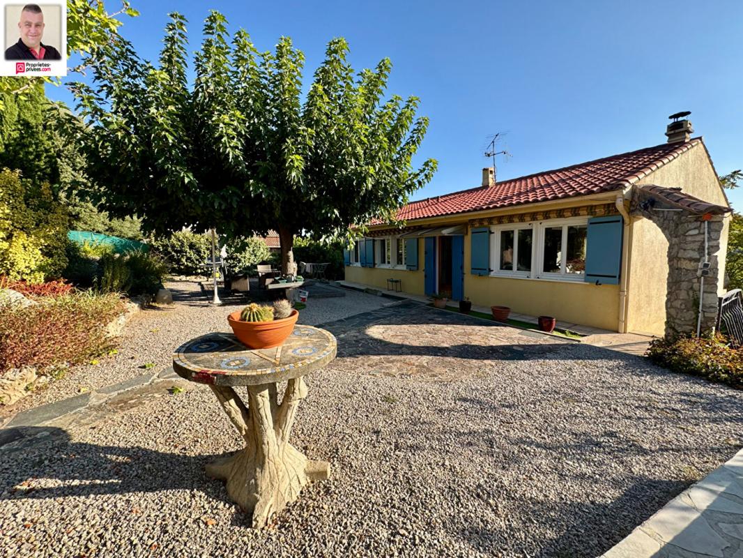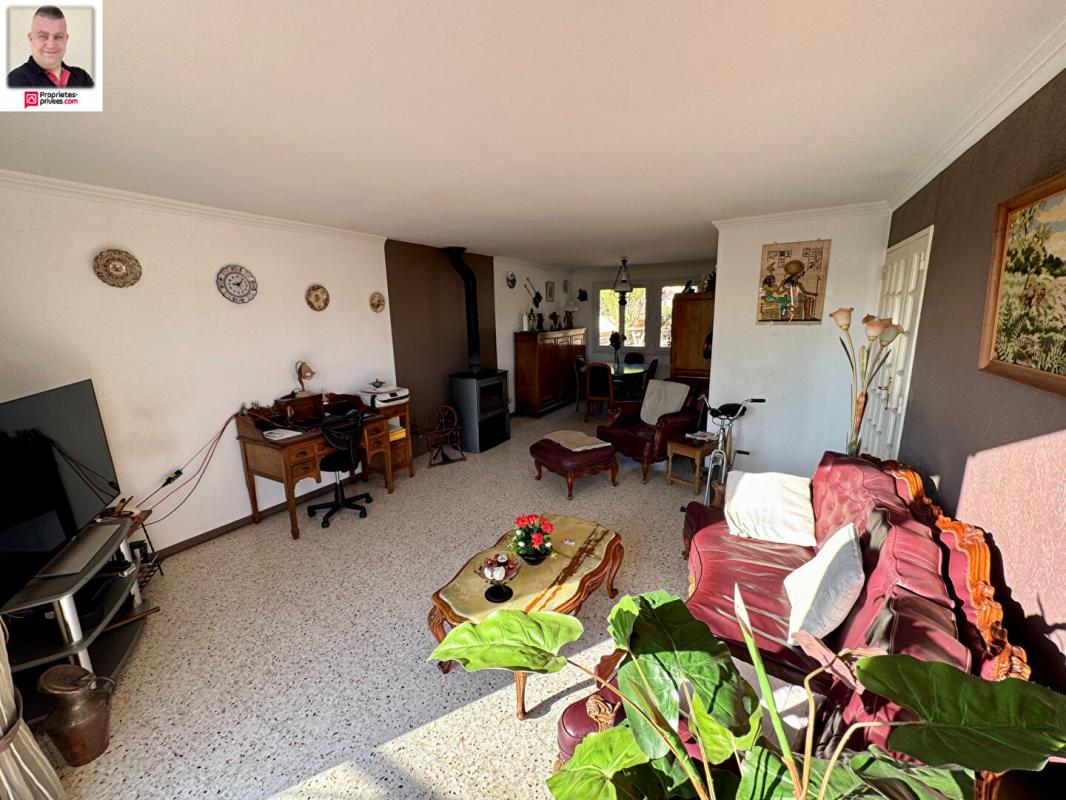 EXCLUSIVITE - Située dans un quartier agréable au calme et résidentiel offrant une vue dominante se situe une villa individuelle de plain pied de 120 m2 à rénover et composée d'un salon séjour avec cheminée, une cuisine indépendante, 3 chambres, une salle d'eau. Un grand terrain de 1700 m2 avec piscine, garage en sous-sol. Branchement tout à l'égoût à prévoir.