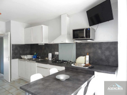 Une opportunité rare dans un secteur prisé A SAISIR! Située dans l'un des quartiers les plus recherchés, cette maison 4 faces en R+1 offre une configuration idéale pour concrétiser vos projets de vie, d'investissement ou de regroupement familial. L'architecture intelligente de cette villa permet une indépendance totale entre les deux niveaux. Au rez-de-chaussée: un appartement de type T2 fonctionnel, lumineux et climatisé, complété par une terrasse privative et un grand garage pouvant encore être aménagé. A l'étage: un joli appartement de type T3 qui comprend un séjour/cuisine avec climatisation, donnant sur une agréable terrasse ainsi deux suites parentales qui garantissent une intimité totale. Emplacement premium: à 150m de la plage et à proximité du marché, des commerces et restaurants. Ce bien étant entièrement refait à neuf avec goût et sobrtiété, vous n'aurez plus qu'à poser vos valises pour y habiter ou le mettre en location dès votre acquisition. Pour le visiter, contactez rapidement notre agence AGENCIMA. * Honoraires à la charge du vendeur.