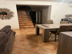 AU CALME MAISON AVEC GARAGE TERRASSE ET JARDIN T4 SUR 600 M2 ENVIRON DE TERRAIN CLOS. SEJOUR OUVERT SUR LA CUISINE UNE CHAMBRE EN RDC AVEC SDB AVEC DOUCHE ET BAIGNOIRE ET DOUBLE VASQUE WC INDEPENDANT UNE BUANDERIE AVEC LAVOIR . A L'ETAGE 2 CHAMBRES UNE SDE ET UN WC INDEPENDANT. CLIMATISATION 4 SPLITS ET CHAUFFAGE CENTRAL AU FUEL. PROX TOUTES COMMODITES ECOLE PRIMAIRE A PIED COMMERCES TRES CALME BEL ENVIRONNEMENT VERDOYANT.