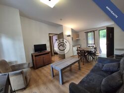 Joli cottage meublé T3 de 45 m² environ avec terrasse de 9,85 m², situé dans une résidence de tourisme bien entretenue.