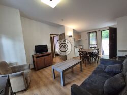 Joli cottage meublé T3 de 45 m² environ avec terrasse de 9,85 m², situé dans une résidence de tourisme bien entretenue.