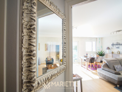 Dalia est cet appartement spacieux de plus de 100 m², situé au coeur du centre-ville Concarnois, il bénéficie des critères les plus souvent recherchés : une grande terrasse, une belle luminosité, une place de parking privée et sécurisée ainsi qu'une accessibilité simplifiée. Idéal pour un séjour en toute sérénité à Concarneau, cet appartement est situé au premier étage d'une résidence sécurisée, dotée d'un ascenseur et d'un parking privé et sécurisé. Dalia se compose d'une grande pièce de vie avec salon-salle à manger, minibar, ouvert sur la cuisine, le tout profitant d'un accès à la terrasse. Le salon dispose d'un canapé très confortable, d'une télévision, et d'une connexion wifi. La grande terrasse vous permettra de manger aisément dehors, tout en étant un peu abrité si le temps n'est pas au beau fixe. Elle dispose également d'un transat, si vous souhaitez vous prélassez au soleil. La cuisine toute équipée (avec une cafetière à filtres, une bouilloire, un grille-pain), dispose d'un four, d'une plaque à induction, et d'un lave-vaisselle pour faciliter encore plus vos vacances ! Les deux grandes chambres, avec un lit double chacune, vous charmeront par leur jolie tapisserie, le confort de leur literie, ainsi que par leur dressing vraiment très spacieux. Ses deux chambres non attenantes et situées aux extrémités de l'appartement vous offriront l'intimité nécessaire lors d'un séjour en famille ou entre amis. Pour votre plus grand confort, Dalia dispose d'une machine à laver, d'un fer et d'une planche à repasser, ainsi que de W.C séparé pour une plus grande intimité. Pour résumé, Dalia, est un appartement confortable et spacieux parfait pour un séjour entre amis ou en famille à Concarneau. Important: L'accès pour rentrer dans le parking à l'arrière de la résidence est très étroit, il est nécessaire de bien savoir manoeuvrer (2m35 de largeur). Place de parking N°4. Location de linge de maison : Notre conciergerie vous propose la location de linge de maison le temps de votre séjour : Kit de draps + serviettes de bain : 20 euros par lit. Taille des literies : 2 lits de 140/200. Cette option est facultative, elle doit être demandée lors de votre réservation. L'équipe Mariette Conciergerie vous accompagnera avec enthousiasme et professionnalisme lors de votre séjour. Tarif à la nuitée : à partir de 70 euros* *Hors frais de ménage, et frais administratif N'hésitez pas à nous contacter pour un devis personnalisé: contact@mariette-ic.com 02.98.51.57.79 Coralie CHARRUE (EI) Agent Commercial - Numéro RSAC : - .