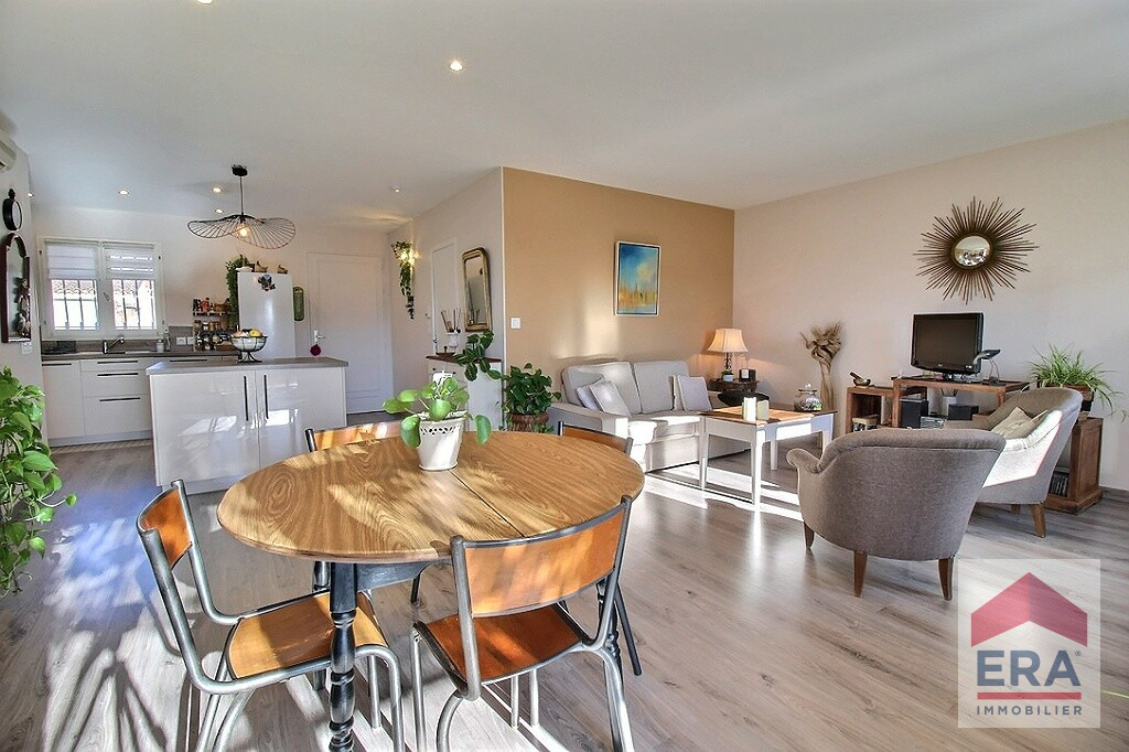Cette maison de 77 m2 se compose, d'un séjour de 27 m2 avec une cuisine équipée, sol en terre cuite, avec poêle à bois donnant sur une jolie terrasse couverte avec vue sur le Luberon et le village exposée sud ouest.