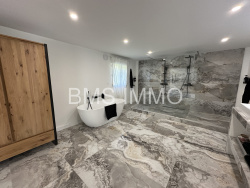 Nous avons le plaisir de vous présenter cette magnifique ferme entièrement rénovée avec des matériaux de qualité et beaucoup de goût, de 220m2 habitables. Située au calme, elle se compose au rez de chaussée d'une magnifique pièce de vie très lumineuse de plus de 80m2, avec sa cuisine équipée, d'une grande buanderie, et d'une très belle suite parentale d'environ 45m2composée d'une chambre avec son dressing et d'une spacieuse salle de bains avec deux douches à l'italienne et baignoire. A l'étage, vous trouverez 4 chambres (entre15m2 & 21m2) et une salle de bains avec douche et WC. Enfin, un jardin et des places de stationnement complètent ce bien de qualité. Cette maison est la parfaite alliance du cachet et d'une décoration moderne et épurée.