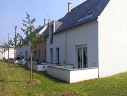 Maison de 68 m² composée d'une entrée avec placard, un WC indépendant avec lave-main, une cuisine aménagée & équipée (four, plaque de cuisson, hotte) ouverte sur le séjour (31 m²).