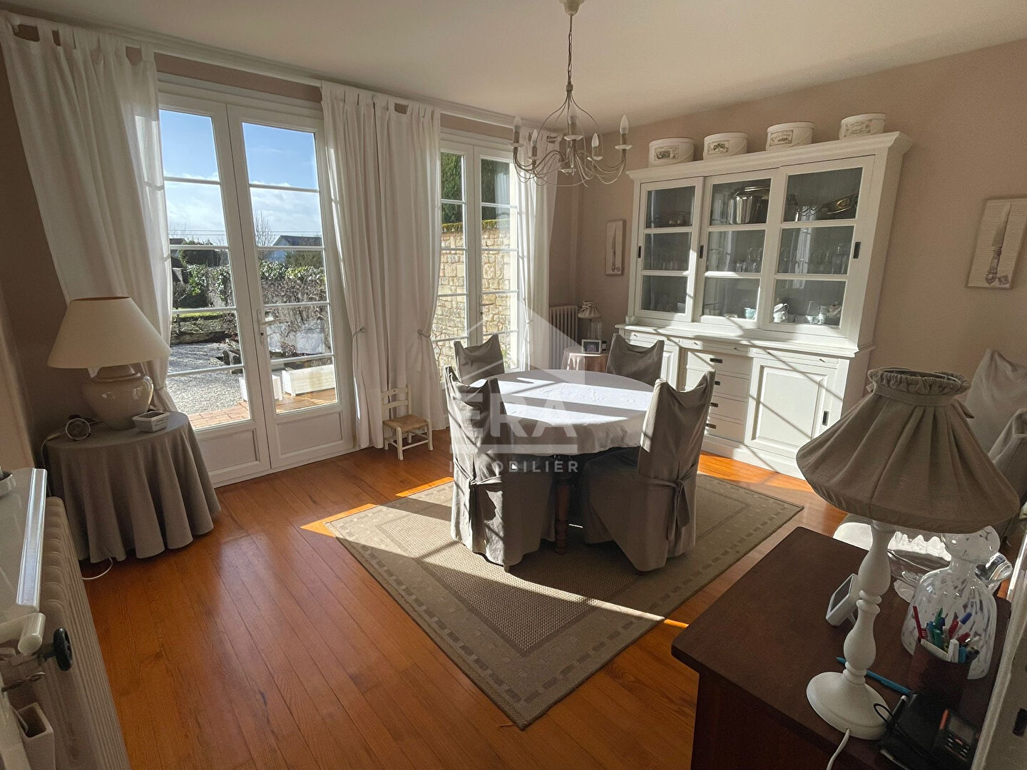 Les baies vitrées donnent sur deux terrasses, pratiquement sans vis à vis en partie dû au mur en pierres majestueux au fond du jardin et vous pourrez profitez d'un vrai spa en dur car il est inclus dans la vente !