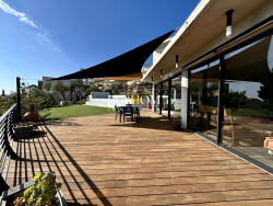 - Rez-de-chaussée: un spacieux séjour de 50 m², baigné de lumière grâce à ses baies vitrées, ouvrant sur une magnifique terrasse en teck de 50 m². Une cuisine équipée de 32 m² avec cellier attenant complète cet espace.