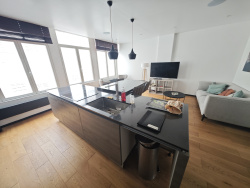Une grande pièce de vie de 30 m2 avec cuisine américaine entièrement équipée (électroménagers haut de gamme)