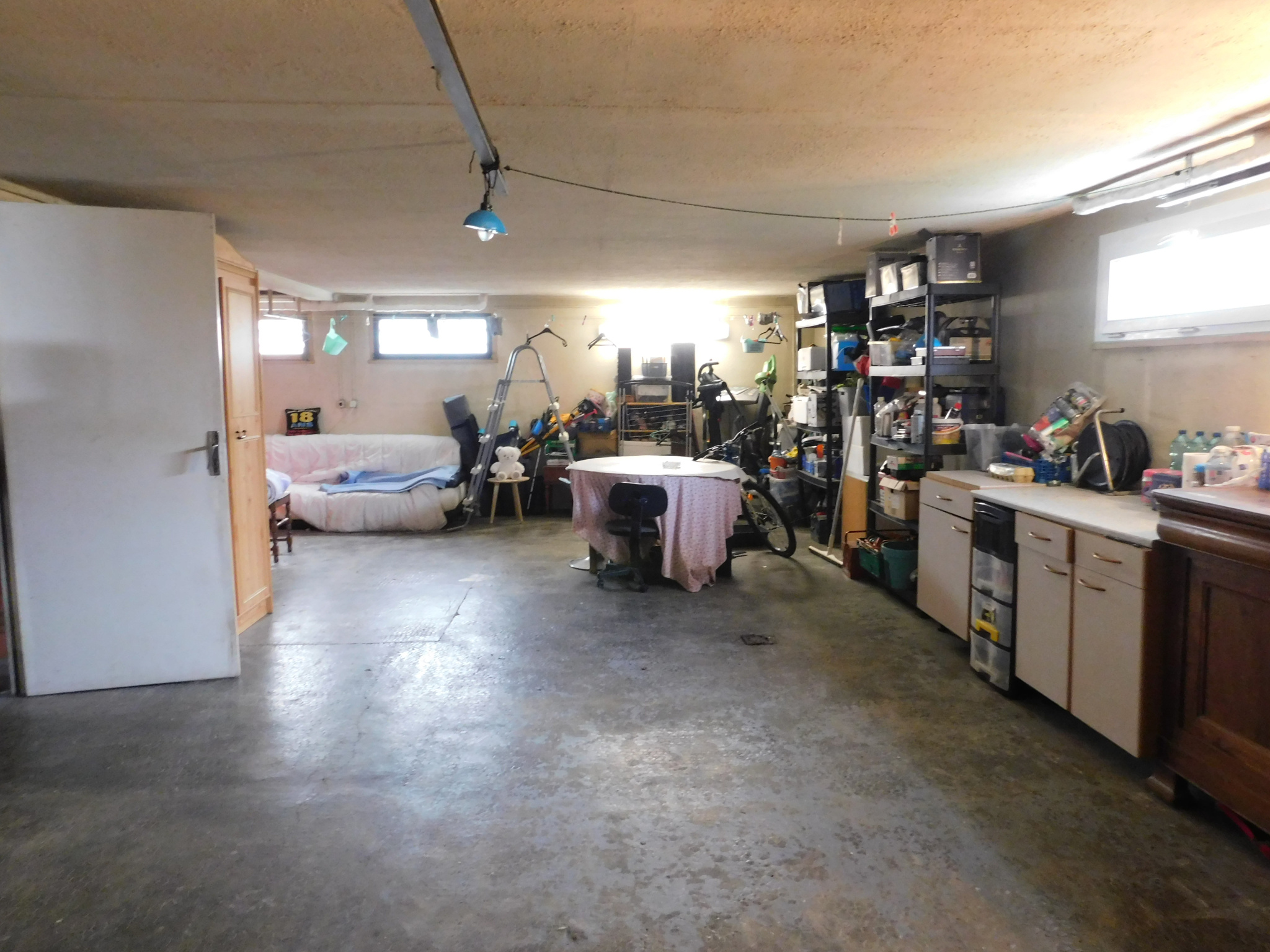 Le rez-de-chaussée se compose d'une entrée distribuant un salon de 25m2 équipé d'un poêle à pellets neuf, ouvert sur une cuisine de 24m2 intégralement équipée, neuve également, suivie d'un accès à une terrasse abritée de 20m2 offrant de l'intimité et une belle vue sur le jardin, entièrement clos et arboré. Une salle à manger de 30m2 donne accès à la cave de 43m2, ainsi qu'aux toilettes et une salle d'eau entièrement repensées.