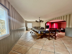 Cette maison de campagne en pierre de plain-pied d'environ 110 m2 allie authenticité et confort. Elle se compose de : o Un salon chaleureux avec cheminée et insert à bois o Une salle à manger lumineuse o Une cuisine équipée o Un couloir o Une salle d'eau moderne avec douche à l'italienne o Un WC indépendant o Une chaufferie/buanderie avec poêle à bois o Un cellier avant d'accéder au garage o deux chambres Les combles aménageables offrent un beau potentiel supplémentaire, correspondant à la surface du salon, de la chaufferie, du couloir, de la salle d'eau et du WC. À cela s'ajoutent des dépendances spacieuses : o Une grange attenante de 82,47 m2 o Un hangar/écuries de 182,67 m2 L'ensemble est implanté sur un terrain cadastré de 12 295 m2, classé en zone naturelle et agricole, avec la maison et ses annexes existantes situées en zone UA. Un bien idéal pour les amoureux de la campagne, les projets agricoles ou équestres.