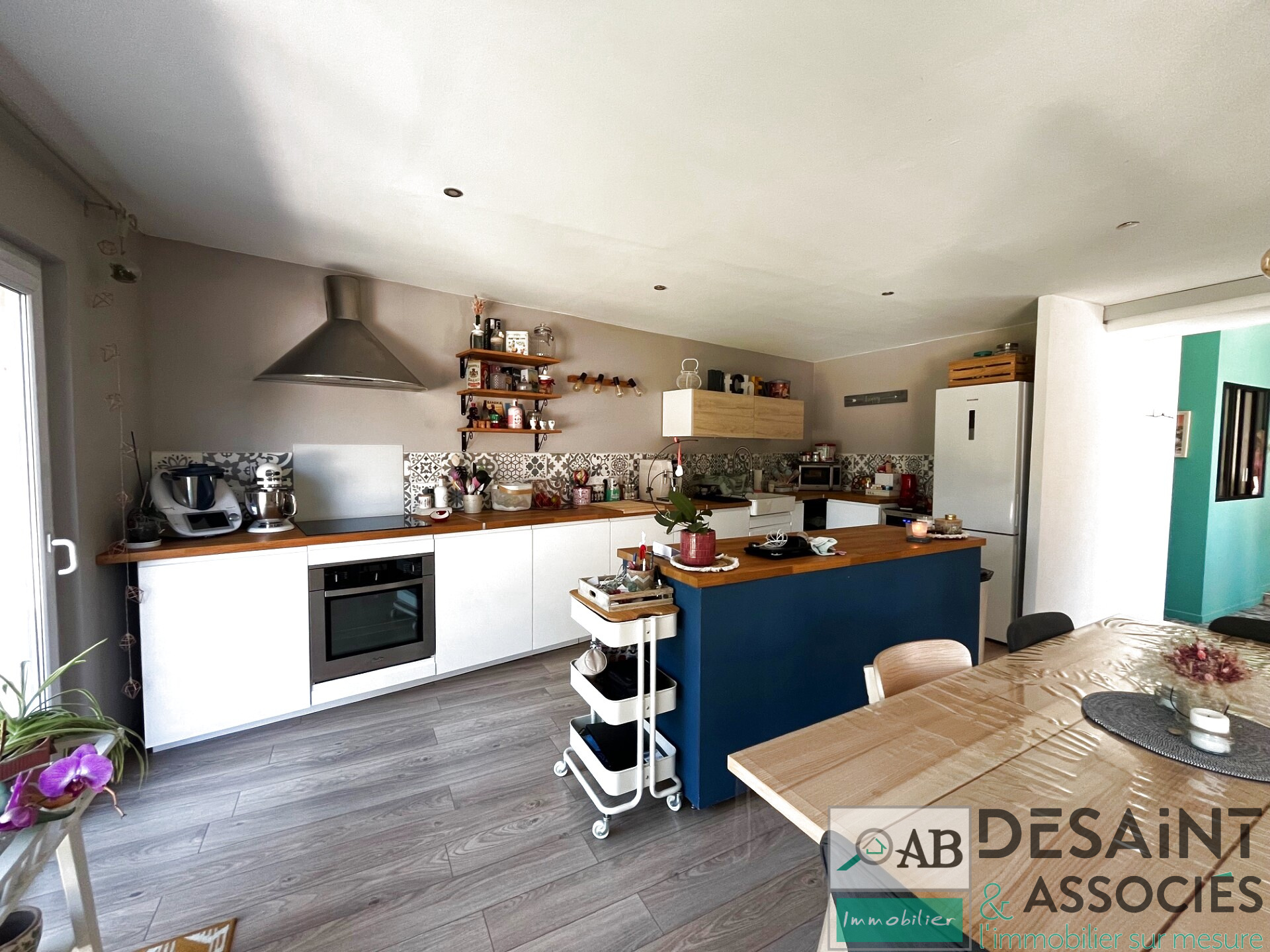 Dès l'entrée, vous serez accueillis par une spacieuse pièce de vie baignée de lumière, ouverte sur une cuisine aménagée où il fait bon partager les moments du quotidien.