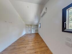 À l'étage, un espace mezzanine dessert 3 grandes chambres mansardées, une salle de bains contemporaine avec douche à l'italienne.
