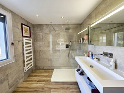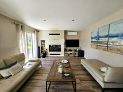 À l'extérieur, une piscine au sel (9x4) entourée de travertin et bois, avec douche solaire, invite à la détente dans un cadre raffiné. Un garage, un carport avec borne de recharge pour voiture électrique, ainsi qu'un portail motorisé avec visiophone assurent confort et sécurité. La propriété est également équipée de climatisation réversible dans chaque pièce, de volets roulants solaires motorisés et de moustiquaires.