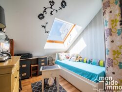 A l'étage, vous trouverez la partie nuit avec 3 chambres, une salle de bain entièrement rénové avec douche à l'italienne, meuble vasque et WC.