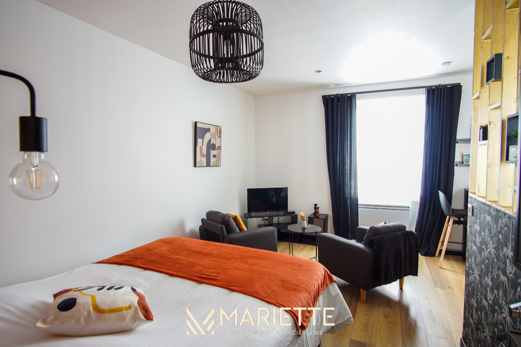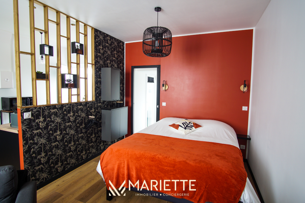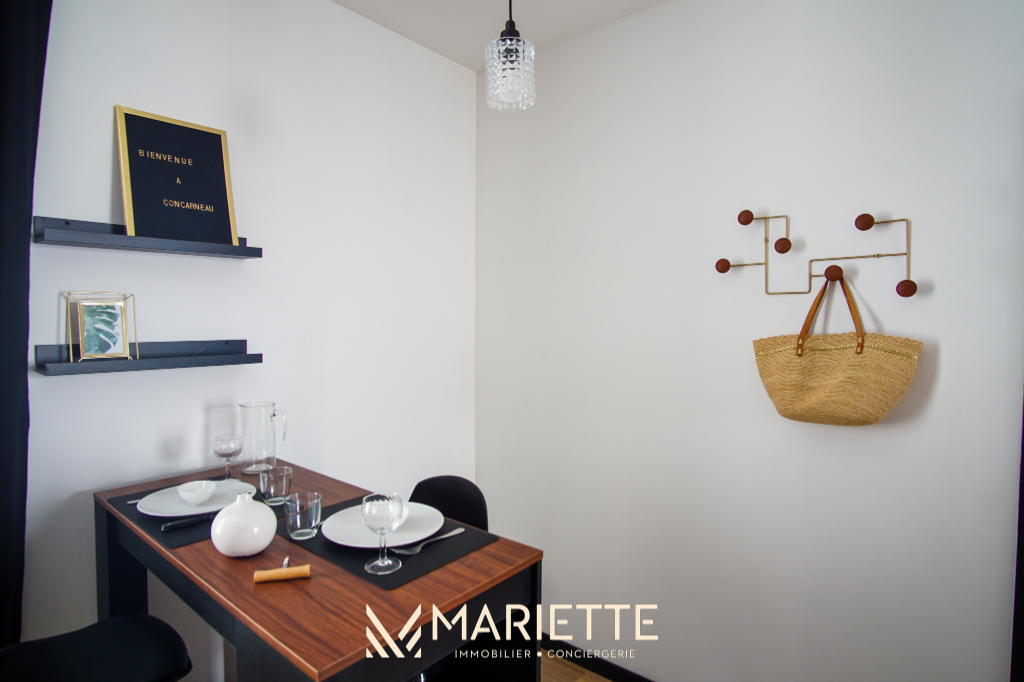 Ce studio tout confort avec son mur et ses poutres apparentes, vous permettra de passer un moment privilégié à deux ! Situé au deuxième étage dans un joli immeuble au quartier du passage, ce studio fait partie d'un ensemble de trois petits appartements bien décorés, tous disponibles à la location saisonnière. L'espace de vie agréablement agencé, vous permet d'avoir un coin cuisine-salle à manger (avec une cafetière Nespresso et une à filtres), et un coin salon pour vous détendre. La chambre à coucher se situe dans le salon, pour un moment cocooning, où vous pourrez regarder la télévision, confortablement installé dans votre lit. La salle de bain quant à elle, toute rénovée, est composée d'une baignoire où vous pourrez également vous doucher, et passer des moments de détente. Vous trouverez les W.C dans ce même espace. Idéal pour un couple, Picco Bianco saura vous faire passer un agréable séjour à deux, mais si vous souhaitez venir avec des couples d'amis tout en gardant votre intimité, deux autres appartements sont disponibles dans le même immeuble (Picco Rosso et Picco Verde, que vous retrouverez sur notre site internet). Situé dans le quartier pittoresque du « passage-Lanriec », avec ses balades le long du rivage de Concarneau, familial et calme, et avec un accès direct à la ville close par la mer avec le bac. Ce quartier face aux remparts de la ville close, anciennement en perpétuel évolution, a vu passer des ouvriers, des pêcheurs et des marchés, donnant un charme certain et une empreinte chargée d'histoire à ce lieu. Location de linge de maison : Notre conciergerie vous propose la location de linge de maison le temps de votre séjour : Kit de draps + serviettes de bain : 20 euros par lit. Taille des literies : 1 lit de 140/200. Cette option est facultative, elle doit être demandée lors de votre réservation. L'équipe Mariette Conciergerie vous accompagnera avec enthousiasme et professionnalisme lors de votre séjour. Tarif à la nuitée : à partir de 55 euros* *Hors frais de ménage, et frais administratif N'hésitez pas à nous contacter pour un devis personnalisé: contact@mariette-ic.com 02.98.51.57.79