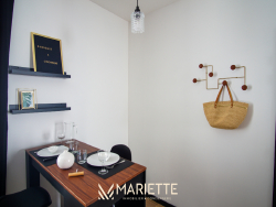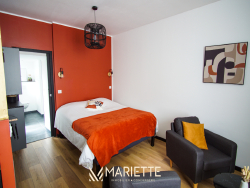 Ce studio tout confort avec sa jolie terrasse, vous permettra de passer un moment privilégié à deux ! Situé au rez-de-chaussée dans un joli immeuble au quartier du passage, ce studio fait partie d'un ensemble de trois petits appartements bien décorés, tous disponibles à la location saisonnière. Dans son environnement chaleureux, cet espace bien agencé dispose d'un coin cuisine (avec une cafetière Nespresso et une à filtres), avec un accès direct sur sa terrasse enclavée, qui donne un aspect intimiste à ce petit extérieur. La chambre à coucher se situe dans le salon, pour un moment cocooning et détente, où vous pourrez regarder la télévision, confortablement installé dans votre lit. Spacieuse, la salle d'eau est très agréable, lumineuse et donne sur l'extérieur. Idéal pour un couple, Picco Rosso saura vous faire passer un agréable séjour à deux, mais si vous souhaitez venir avec des couples d'amis tout en gardant votre intimité, deux autres appartements sont disponibles dans le même immeuble (Picco Verde et Picco Bianco, que vous retrouverez sur notre site internet). Situé dans le quartier pittoresque du « passage-Lanriec », avec ses balades le long du rivage de Concarneau, familial et calme, et avec un accès direct à la ville close par la mer avec le bac. Ce quartier face aux remparts de la ville close, anciennement en perpétuel évolution, a vu passer des ouvriers, des pêcheurs et des marchés, donnant un charme certain et une empreinte chargée d'histoire à ce lieu. Location de linge de maison : Notre conciergerie vous propose la location de linge de maison le temps de votre séjour : Kit de draps + serviettes de bain : 20 euros par lit. Taille des literies : 1 lit de 160/200. Cette option est facultative, elle doit être demandée lors de votre réservation. L'équipe Mariette Conciergerie vous accompagnera avec enthousiasme et professionnalisme lors de votre séjour. Tarif à la nuitée : à partir de 60 euros* *Hors frais de ménage, et frais administratif N'hésitez pas à nous contacter pour un devis personnalisé: contact@mariette-ic.com 02.98.51.57.79