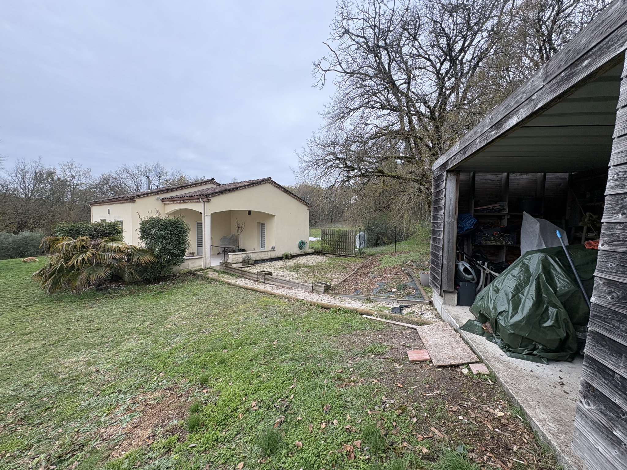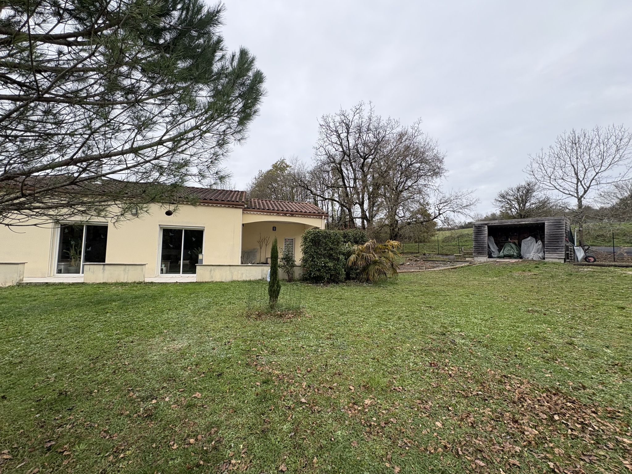 L'ensemble est implanté sur un terrain d'environ 7 000 m2, plat et arboré, offrant calme, intimité et une belle vue dégagée sur la campagne environnante.