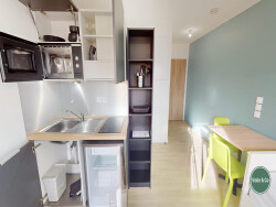 L'agence Visite & Co vous présente 'Study' : un studio entièrement meublé situé près du Mémorial de Caen au sein d'une résidence étudiante de 2023 !