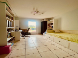 Le rez-de-chaussée comprend un salon lumineux d'environ 29 m2, climatisé et équipé d'une cheminée, ouvert sur l'extérieur. La cuisine séparée et entièrement équipée donne accès à l'une des trois terrasses et au jardin.