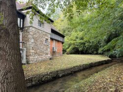 Réf. 8911 À 1h de Paris Ouest Vallée de l'Iton Proximité d'Évreux. Environnement exceptionnel pour cet ancien moulin de 103m² env., datant du début du XIX? siècle, comprenant : RDC : Entrée, salle d'eau avec WC, cuisine aménagée et équipée, vaste séjour de 44 m² & et salle à manger. A l'étage : Couloir/galerie, deux belles chambres dont une avec sa salle de bains / douches privative et salle de douches avec WC. Maison d'invités de 120m² env., (ancienne maison restaurée) comprenant Séjour d'environ 32 m² avec coin, Pièce d'environ 22 m², Véranda utilisée comme salle de jeux. À l'étage : galerie, salle de douches avec WC, deux chambres (env. 17 et 20 m²) et un dortoir de 38 m². Attenant à la maison d'amis, avec accès extérieur : pièce/cellier, laverie/buanderie et local technique pour la piscine chauffée et filtrée. Le tout sur un terrain clos de murs et de haies vives de 7 400 m², aménagé en parc d'agrément, superbement arboré et traversé par la rivière et les bras de l'Iton. Verger à l'arrière.