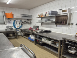 Cuisine équipée bien entretenue et fonctionnelle composée d'une ligne de cuisson avec 4 feux vifs , plancha , four mixte , frigo , une cellule de refroidissement , double friteuse , un local plonge avec machine à capot viennent compléter celle-ci.