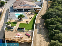 Dans un quartier calme et résidentiel, très belle villa de plain-pied en 4 faces d'environ 200 m2 avec pisicne sur une parcelle de 930 m2. Elle est composée d'une belle pièce à vivre avec cuisine équipée ouverte de 66 m2, 4 belles chambres dont 1 suite parentale avec salle de bains de 30 m2, 1 salle de bains. A l'étage 1 chambre mansardée de 22 m2. Piscine chauffée avec jacuzzi intégré, terrasse couverte, grand garage de 190 m2 et atelier de 80 m2 Construction moderne de qualité avec belles prestations telles que menuiserie à galandage, chauffage gainable réversible, volets roulants à fermeture centralisée. Bien exposée, vue dégagée sur montagnes. Les informations sur les risques auxquels ce bien est exposé sont disponibles sur le site Géorisques : www.georisques.gouv.fr Cette annonce vous est proposée par M. Didier JOULIA - - NoRSAC: 799613229, Enregistré au Greffe du tribunal de commerce de PERPIGNAN