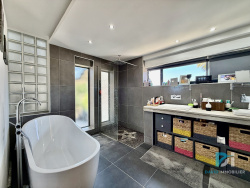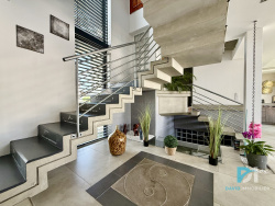 Sur la commune prisée de Florensac, entre Pézenas, Marseillan et Agde, à seulement 10-15 minutes des plages et à proximité immédiate des commerces, commodités et grands axes routiers, découvrez cette villa unique en son genre, conçue avec goût et modernité. Située dans un quartier pavillonnaire calme et sans vis-à-vis, elle offre un cadre de vie rare, mêlant design, confort et intimité. Dès l'extérieur, son architecture moderne aux lignes épurées se démarque immédiatement. L'entrée paysagée est élégante, avec des plantations soignées et un aquarium traversant, visible depuis l'extérieur et depuis la pièce à vivre, qui confère à la maison une touche résolument originale et raffinée. À l'intérieur, la grande pièce à vivre surprend par ses volumes et sa luminosité : cuisine ouverte entièrement équipée avec îlot central, séjour et salon chaleureux donnant sur le jardin grâce à un mur de baies vitrées escamotables. Cette conception offre une parfaite continuité entre l'intérieur et l'extérieur, idéale pour profiter pleinement des belles journées méditerranéennes. L'extérieur aménagé est un véritable espace de détente et de convivialité, avec : ? Piscine à débordement chauffée (pompe à chaleur) avec jacuzzi intégré ? Bar extérieur et coin repas abrité ? Espace pelouse synthétique ? Arrosage automatique des plantations La maison propose un agencement en demi-niveaux qui préserve l'intimité de chacun :