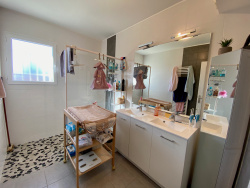 VILLENEUVE SUR LOT, idéalement situé dans un lotissement cette maison de 119,97 m2 avec un terrain de 887 m2 vous séduira à coup sur! Elle comprend en rez-de-chaussée : une pièce de vie avec un coin cuisine aménagée (plaque et hotte), deux chambres avec placards, une salle d'eau, un WC et une buanderie. A l'étage, deux chambres avec placards, une salle d'eau et un WC indépendant. Chauffage central au gaz de ville et climatisation réversible. Ballon électrique thermodynamique. Maison respectant la RT 2012. Disponible au 31 octobre 2025.