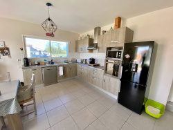 VILLENEUVE SUR LOT, idéalement situé dans un lotissement cette maison de 119,97 m2 avec un terrain de 887 m2 vous séduira à coup sur! Elle comprend en rez-de-chaussée : une pièce de vie avec un coin cuisine aménagée (plaque et hotte), deux chambres avec placards, une salle d'eau, un WC et une buanderie. A l'étage, deux chambres avec placards, une salle d'eau et un WC indépendant. Chauffage central au gaz de ville et climatisation réversible. Ballon électrique thermodynamique. Maison respectant la RT 2012. Disponible au 31 octobre 2025.