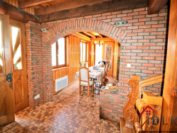 En exclusivité, découvrez cette maison solide et atypique d'environ 150 m2 sur sous-sol complet, érigée sur un terrain arboré de 2000 m2. Elle offre de beaux volumes et un charme authentique rappelant les chalets de la Forêt Noire. Agencement :