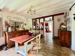 NOUVEAUTÉ dans votre agence ERA CAP40 Immobilier !Située dans le charmant village de Sabres (40630), à seulement 30 minutes de Mont-de-Marsan, venez découvrir cette authentique maison landaise de 1862, rénovée et offrant 144 m² habitables.Au rez-de-chaussée, elle se compose d'un séjour, d'une salle à manger, d'une cuisine indépendante, de deux chambres, d'une salle d'eau et d'un WC séparé.À l'étage, une grande pièce de vie de 33 m² laisse libre cours à vos envies d'aménagement (dortoir, salle de jeux, bureau, chambres supplémentaires...).À l'extérieur, vous profiterez d'un terrain arboré de plus de 6 000 m², d'une dépendance d'environ 47 m² avec appentis, d'un abri bois ainsi que d'un puits.Côté confort :- Chauffage assuré par un poêle à bois complété par des radiateurs électriques dans les chambres et la salle d'eau,- Isolation refaite (murs et toiture),- Fosse septique conforme,- Menuiseries en double vitrage bois et PVC, avec volets en bois.Un bien de caractère alliant charme de l'ancien et confort actuel, à découvrir sans tarder !