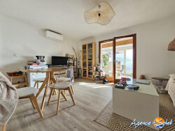Maison rénovée 70m² ? Gruissan villageÀ vendre, au coeur du charmant village de Gruissan, à seulement deux pas de l'étang et des commerces, jolie maison de 70m² entièrement rénovée, prête à vous accueillir sans aucun travaux.Elle offre un espace de vie agréable avec une cuisine aménagée et équipée ouverte sur le séjour, réchauffé par un poêle à bois idéal pour l'hiver. La maison dispose de 3 chambres permettant d'accueillir famille et amis en toute sérénité.À l'extérieur, vous profiterez d'une agréable terrasse tropézienne, parfaite pour partager des repas au soleil ou simplement vous détendre. La façade a été refaite récemment, gage de tranquillité pour de longues années.Idéal pour une résidence principale, une maison de vacances ou encore un investissement locatif saisonnier grâce à son emplacement recherché au centre du village.