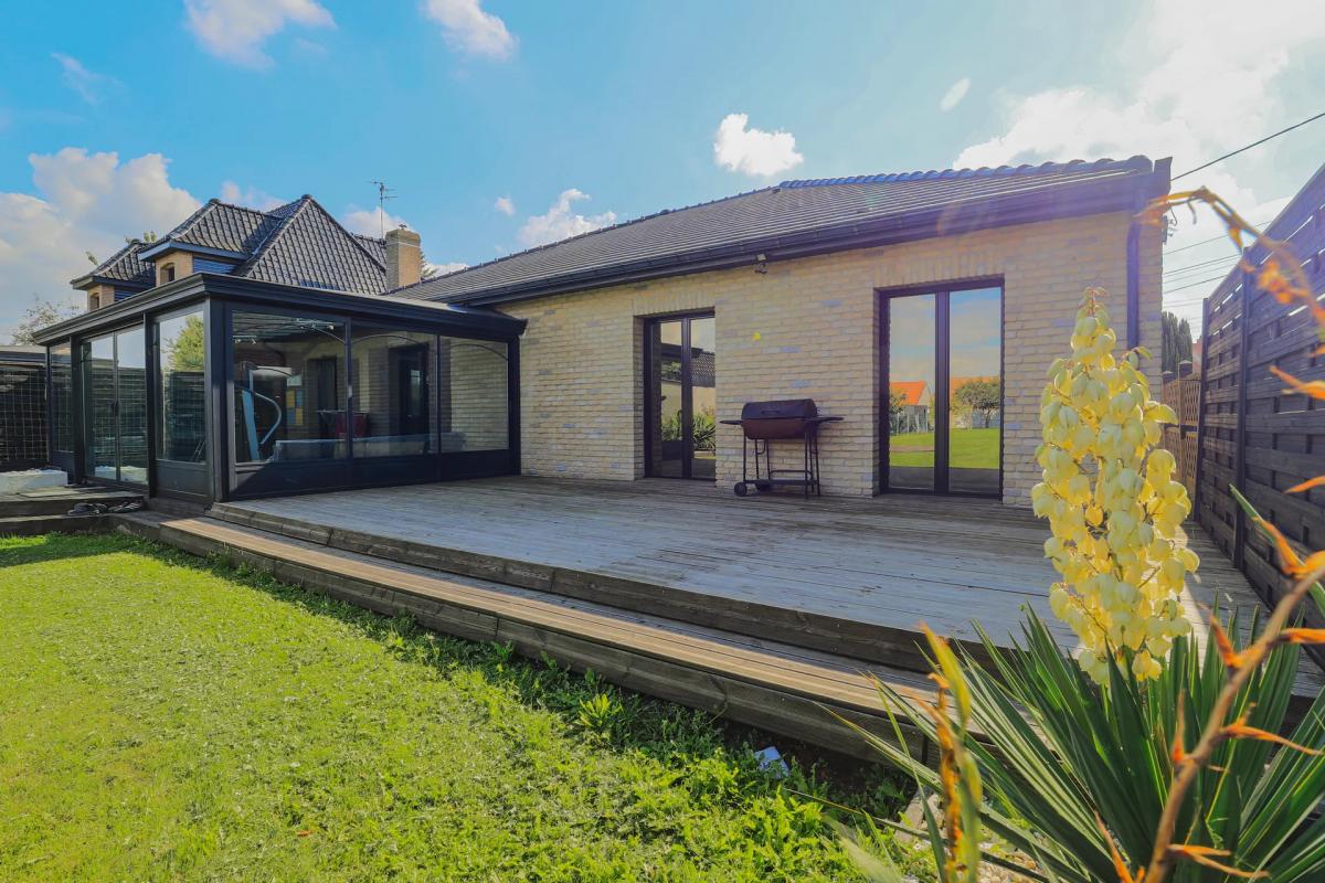 COLEMBERT-CM15413Pavillon contemporain de plain-pied ? Construction 2019À la recherche d'un bien moderne, confortable et sans travaux ?Ce pavillon récent de 100 m² habitables, bâti en 2019, vous attend : posez vos valises et profitez immédiatement de ses prestations de qualité.Un espace de vie lumineux et convivialLa pièce à vivre, baignée de lumière grâce à ses trois baies vitrées coulissantes orientées sud-ouest, s'ouvre sur une vue dégagée sur la campagne.La cuisine aménagée et équipée, intégrée dans cet espace chaleureux, séduira les amateurs de convivialité et de cuisine familiale.Un espace nuit fonctionnel et bien pensé ? Deux chambres spacieuses. ? Une salle de bain complète, équipée à la fois d'une douche et d'une baignoire. ? Une laverie pratique pour un quotidien simplifié.Les atouts qui font la différence ? Un grenier aménageable de 32 m² pour vos projets futurs. ? Un garage fermé et plusieurs places de stationnement. ? Un terrain de 1 016 m², idéalement orienté, propice aux beaux jours. ? Des prestations modernes : chauffage au sol par pompe à chaleur, domotique, volets roulants électriques, menuiseries aluminium double vitrage.Une situation stratégiqueProche de la RN42, au coeur du triangle Calais ? Saint-Omer ? Boulogne-sur-Mer, ce pavillon allie confort moderne, qualité de construction et emplacement pratique.Un bien rare sur le secteur, à découvrir sans tarder !PRIX : 341 250 EUROS F.A.I.CLASSE ENERGIE : AMe contacter : Marianne Caboche 06.50.09.35.64RSAC : 750 139 578