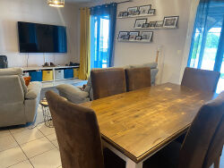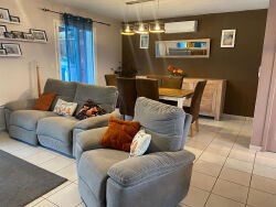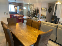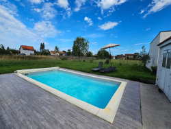 Maison de plain-pied construite en 2008, d'une surface habitable de 98 m². Elle se compose de 5 pièces, incluant une pièce à vivre traversante, 3 chambres, un bureau, un cellier et 1 salle d'eau. La cuisine est aménagée et équipée. Exposée Est et Ouest, elle bénéficie d'un environnement calme, agrémenté d'une vue sur la campagne. La maison est dotée de radiateurs, d'un poêle à bois et d'une climatisation dans la pièce principale. Le terrain de 2000 m² comprend une grande terrasse et une piscine au sel chauffée. Atouts majeurs : la superficie du terrain, la piscine et le confort du plain-pied.Réf 3644
