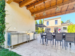 à 10 mn de Saint-Rémy-de-Provence, découvrez cette magnifique maison récente située à proximité immédiate du centre de Maillane.Cette villa propose une cuisine équipée ouverte sur une pièce de vie lumineuse, 3 suites parentales dont une au rez-de-chaussée, ainsi qu'un bureau.Côté annexes, vous disposez d'un cellier, d'une buanderie et d'un double garage.Le jardin de 900 m2 a été optimisé pour profiter au maximum de la piscine et son poolhouse, ainsi que de ses 2 terrasses et son terrain de pétanque.La maison dispose des dernières prestations pour un maximum de confort: plancher chauffant et rafraichissant, climatisation réversible, menuiseries en aluminium, volets roulants électriques etc.Un bien rare, offrant tout le confort moderne, idéal aussi bien en résidence principale comme secondaire !