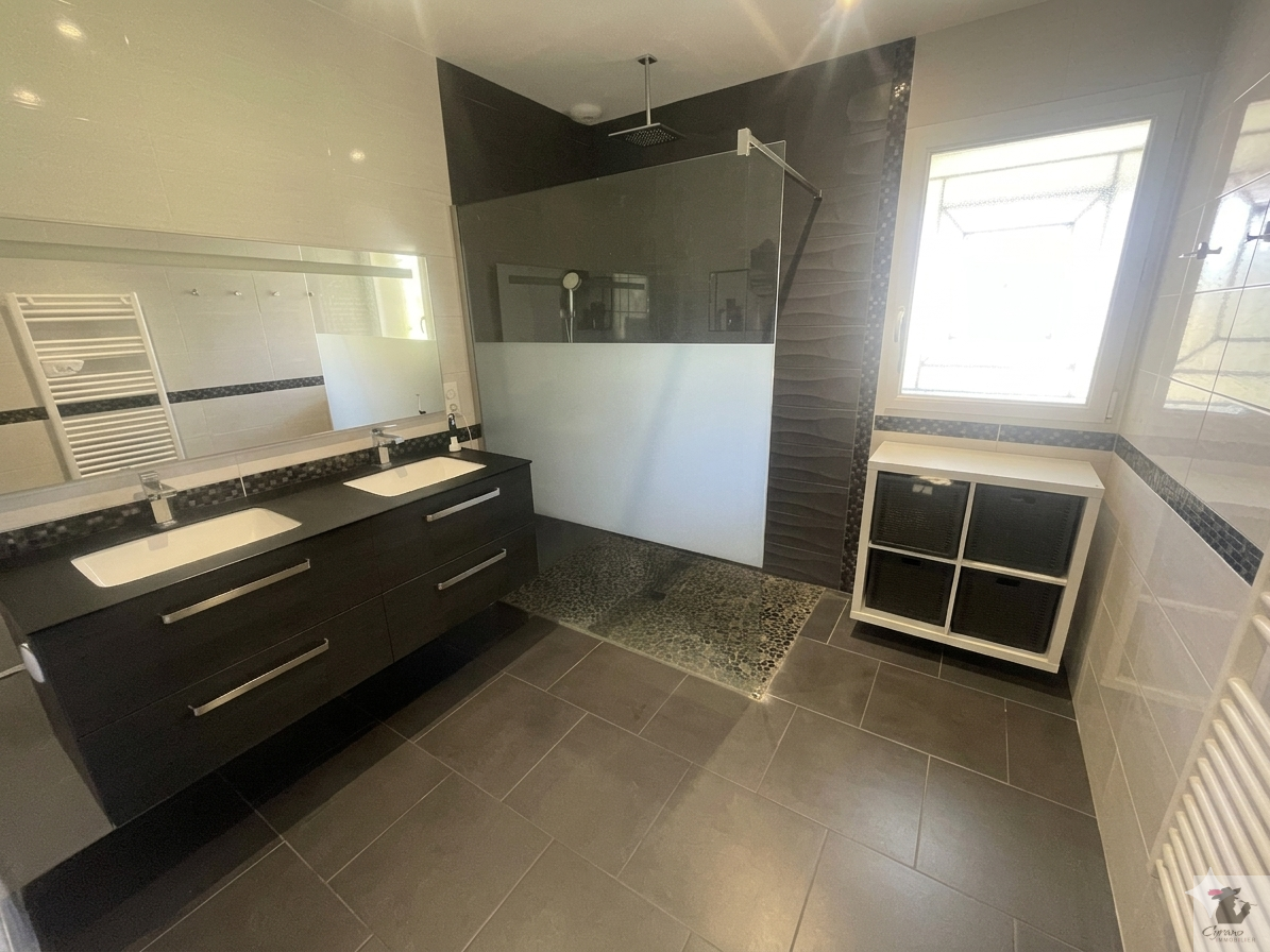 A vendre, à proximité de Périgueux (24000) superbe Maison familiale entièrement rénovée avec piscine & terrain paysager et un studio indépendant.Située dans un environnement calme et résidentiel sur la commune de Razac-sur-l'Isle (24430), cette maison entièrement rénovée de 165 m² habitables vous séduira par ses volumes, ses prestations modernes et son agencement idéal pour une vie de famille ou une activité de location.Le rez-de-chaussée s'ouvre sur une vaste pièce de vie lumineuse regroupant salon, salle à manger et une cuisine ouverte entièrement aménagée et équipée, le tout dans une ambiance chaleureuse avec cheminée et poêle à granulés. Tout a été refait avec goût : cuisine, sols, murs, plafonds, menuiseries, électricité et décoration ? vous n'aurez qu'à poser vos valises !Côté nuit, un dégagement mène à trois belles chambres (avec placards), une salle de bains moderne avec baignoire & douche à l'italienne et un WC indépendant.À l'étage, une immense suite parentale grâce à sa salle d'eau privative et un grenier.Le sous-sol total réserve de belles surprises : - Un studio indépendant avec salle d'eau et WC, idéal pour recevoir ou pour une activité locative, - Une grande buanderie, un atelier et un garage deux voitures.Le tout est implanté sur un terrain clos de 1446 m², joliment arboré et paysager, avec en prime une piscine pour profiter pleinement des beaux jours.Atouts supplémentaires : maison lumineuse, rénovations de qualité, confort moderne, espaces indépendants, environnement calme, proximité de Périgueux et des commodités.Un bien rare sur le secteur à visiter sans tarder !Les informations sur les risques auxquels ce bien est exposé sont disponibles sur le site Géorisques : www.georisques.gouv.frCe bien est situé dans une zone soumise à l'obligation légale de débroussaillement conformément à l'article L. 131-10 et L. 134-6 du Code forestier.Si vous êtes vous aussi "vendeurs", contactez-nous au 05.53.09.12.11 pour estimer gratuitement votre bien !