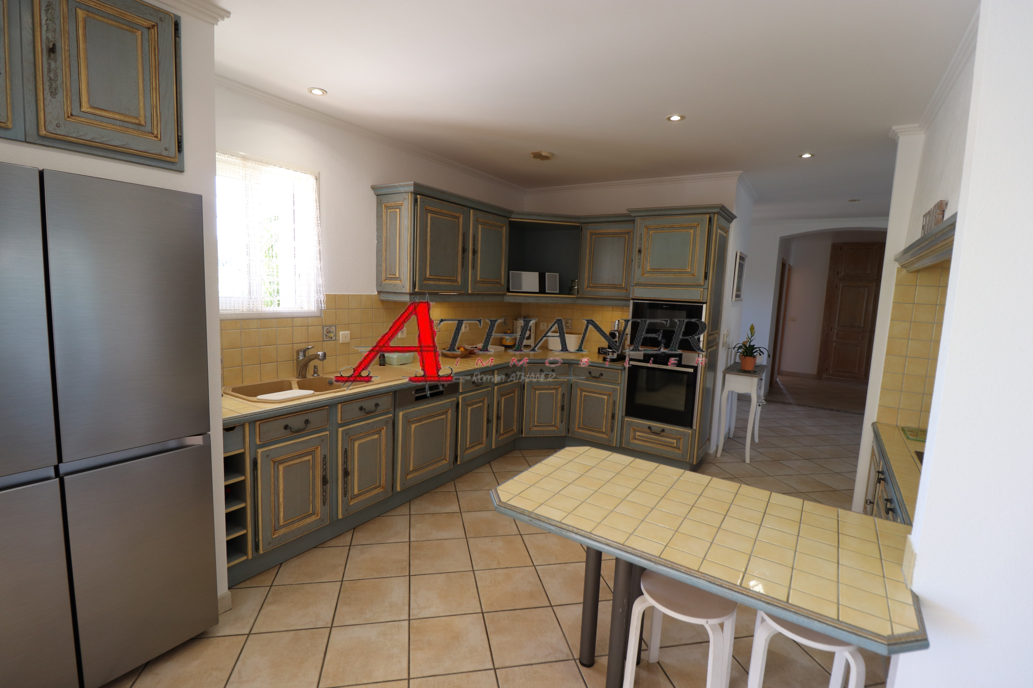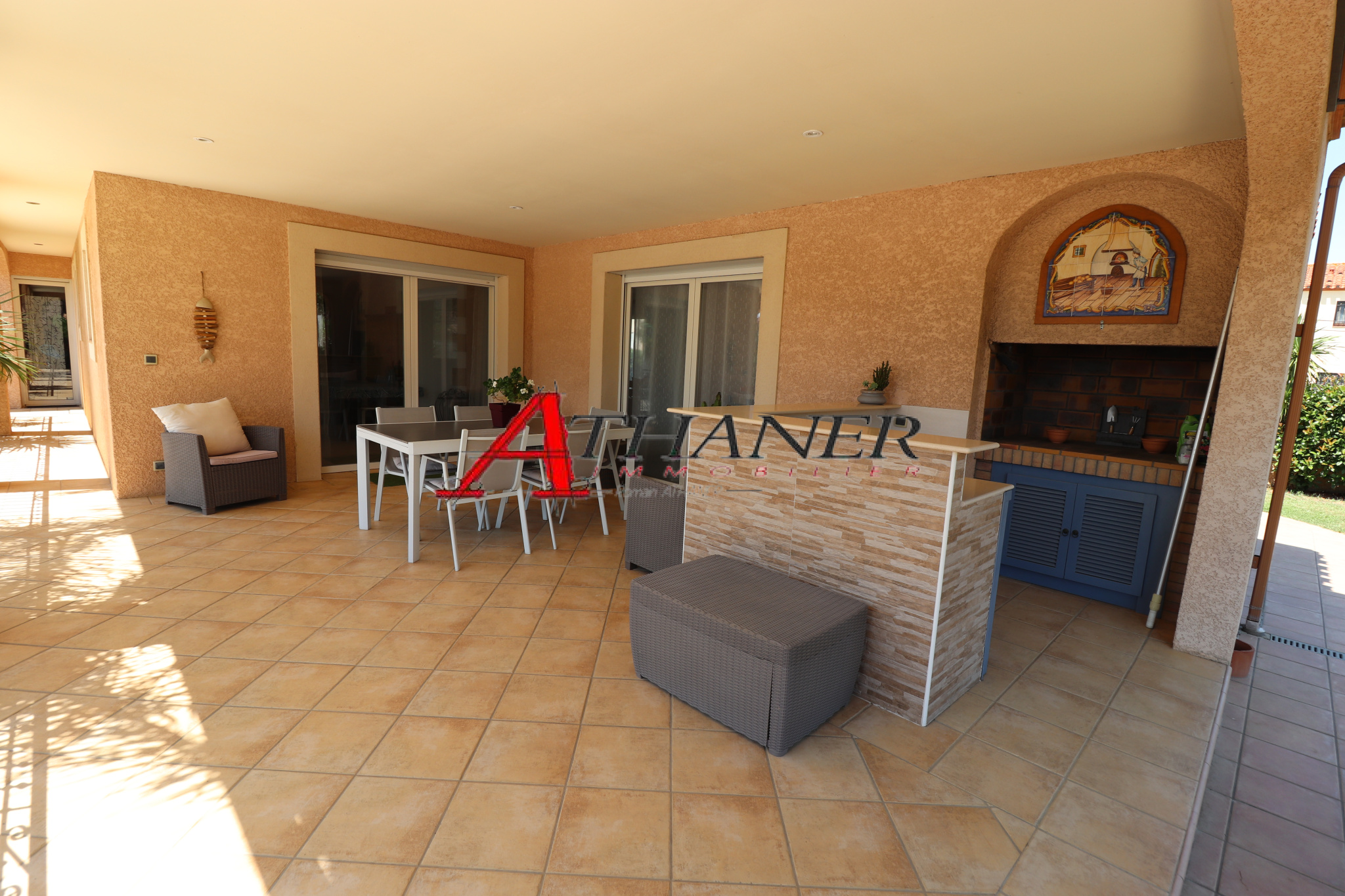 Secteur golf , VILLA plain-pied 4 FACES sans vis à vis avec piscine et dépendance .Située dans un environnement privilégié, cette maison des années 80, pleine de charme, a gardé son cachet d'origine, avec ses poutres apparentes, son toit mansardé et son carrelage en terre cuite.Un très spacieux et chaleureux salon de 50 M2 offrant une cheminée a foyer ouvert, et très lumineux donnant sur la piscine, vous permettra de profiter directement des extérieurs de la maison.Cette villa de plain-pied 4 faces, sans vis-à-vis, offre un beau potentiel avec quelques travaux à prévoir.Caractéristiques principales :Les points forts : un Terrain de 1000 m², idéal pour profiter d'un écrin de verdure au coeur du golf Surface habitable comprenant 3 chambres, dont une suite parentale, toutes avec accès direct à la piscine.Salon chaleureux avec cheminée à foyer ouvert.Dépendance avec annexe, parfait pour un bureau ou une chambre supplémentaire.Exterieur : abri voiture et terrasse couverte pour vos repas en extérieur.Un bien rare dans un secteur recherché, à proximité immédiate des commerces et des plages.