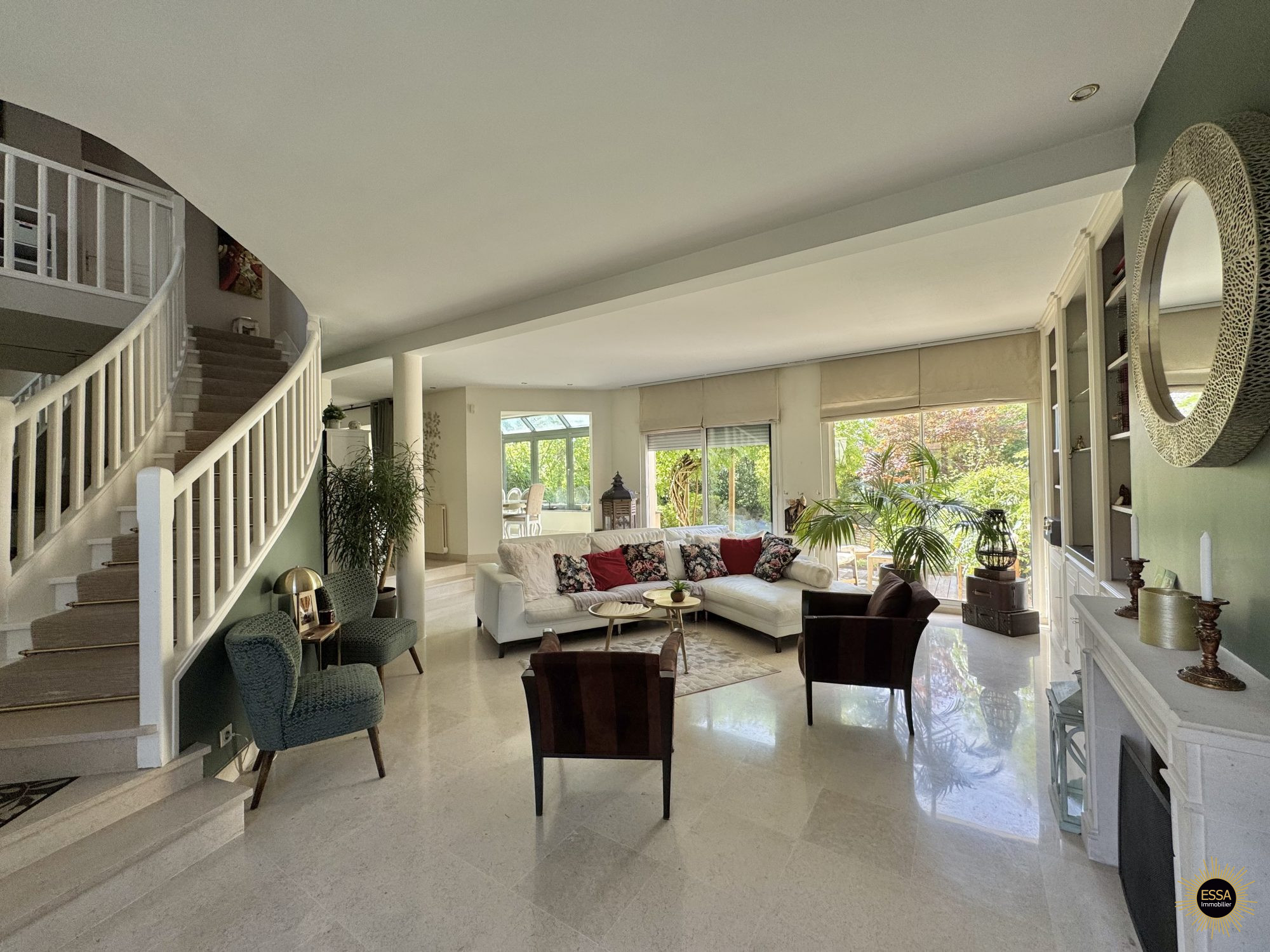 "Idéalement située sur le secteur calme et verdoyant du Domaine du Parc, votre Agence ERA vous présente cette belle maison de type Rambouillet de 285 m² en bon état, édifiée sur un terrain arboré de 950 m² avec piscine.Au fond d'une impasse et à l'abri des regards, le rez-de-chaussée de cette maison se compose d'une grande entrée avec placard, d'une chambre avec salle de douche et WC (idéal pour une chambre d'amis ou une salle télé), d'un double séjour traversant de 45 m² avec cheminée, d'une grande cuisine avec espace dinatoire entièrement rénovée, d'un espace bar et d'une grande véranda de 30 m² attenante au séjour.Le tout offrant l'accès de plein pied à une grande terrasse exposée SUD rénovée à l'été 2024, au jardin et sa grande piscine chauffée (Pompe à chaleur installée en 2018).Le premier étage se compose quant à lui, d'une suite parentale avec balcon, dressing et salle de douche avec WC refait à neuf, 3 belles chambres avec placard intégré, une salle de bains avec WC et un bureau.Enfin, le dernier niveau vous offre l'accès à une très grande chambre sous comble.Une cave à vin hélicoïdale, un grand garage avec recharge pour véhicule électrique et un local piscine complètent ce bien.Cadre de vie d'exception à proximité immédiate de la forêt domaniale de Marly, des écoles (Maternelle et Primaire à 8 minutes à pied), du Golf de St Nom et des transports (Bus et Ligne 13 du Transilien)."