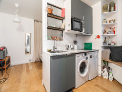 Votre agence ERA Immobilier Jules Joffrin, vous propose en exclusivité, un joli 2 pièces situé au coeur du quartier Jules Joffrin.L'appartement se situe au 5 étage avec ascenseur d'une belle copropriété, bien entretenue.Il se compose d'une pièce à vivre avec cuisine ouverte, une petite chambre, une salle de bains avec WC, et d'un dressing.L'appartement est calme et lumineux, et dispose du charme de l'ancien.Une cave complète le bien.