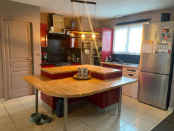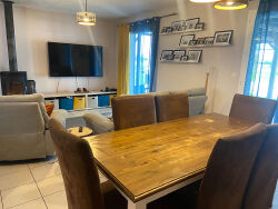 Maison de plain-pied construite en 2008, d'une surface habitable de 98 m². Elle se compose de 5 pièces, incluant une pièce à vivre traversante, 3 chambres, un bureau, un cellier et 1 salle d'eau. La cuisine est aménagée et équipée. Exposée Est et Ouest, elle bénéficie d'un environnement calme, agrémenté d'une vue sur la campagne. La maison est dotée de radiateurs, d'un poêle à bois et d'une climatisation dans la pièce principale. Le terrain de 2000 m² comprend une grande terrasse et une piscine au sel chauffée. Atouts majeurs : la superficie du terrain, la piscine et le confort du plain-pied.Réf 3644