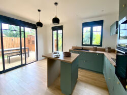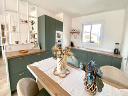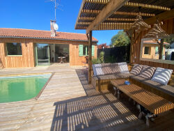 Laissez-vous séduire par cette charmante maison de plain-pied, entièrement rénovée avec goût, qui allie authenticité et modernité dans un esprit typiquement bassin d'Arcachon.Dès l'entrée, vous découvrez une spacieuse pièce de vie baignée de lumière, avec sa cuisine ouverte aménagée et équipée, idéale pour recevoir famille et amis.L'espace nuit se compose : - d'une suite parentale avec salle d'eau et dressing, - de deux chambres supplémentaires, accompagnées d'une salle de bain et d'un WC indépendant.À l'extérieur, la pièce à vivre s'ouvre sur une grande terrasse en bois, véritable espace de détente, avec piscine et pool house aménagé d'un coin bar pour des moments conviviaux en toute saison.Côté confort : climatisation réversible, volets battants en bois. - Une maison pleine de charme, fonctionnelle et prête à accueillir votre famille, dans un quartier calme et résidentiel !Pour plus d'informations ou pour organiser une visite, n'hésitez pas à nous contacter dès aujourd'hui au 05 57 63 34 98La présente annonce immobilière a été rédigée sous la responsabilité éditoriale de Mme Caroline BODEREAU - agent commercial immatriculé au RSAC de Bordeaux sous le numéro 837 855 915 00018.
