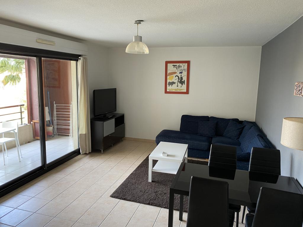 Montpellier / Avenue du Pont-TrinquâtDans une résidence sécurisée, un appartement de type T3 meublé de 60.79 m² traversant et lumineux au 3ème étage sans ascenseur.L'appartement dispose d'une entrée avec placards distribuant une cuisine aménagée et équipée indépendante avec accès à une loggia (rangements), un salon donnant accès à un balcon d'environ 5 m² sans vis-à-vis, deux chambres avec placards, une salle d'eau avec placard et W.C. séparés.Appartement fraîchement repeint.Situation au calme avec une place de parking et un cellier privatifs.Disponible dès maintenant !