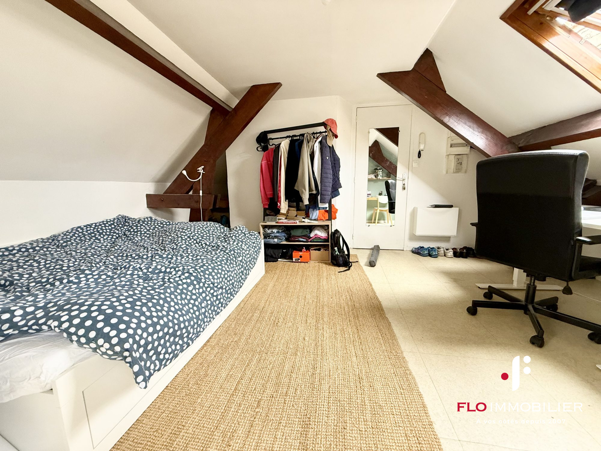 EXCLUSIVITÉ ERA CAEN UNIVERSITÉ Découvrez ce bel appartement T2 de 24 m2 (loi Carrez // 34 m2 au sol) situé à deux pas de l'église Saint -Pierre et du château de Caen.Vous serez charmés par ses pierres apparentes, ses poutres en bois, et sa vue.Il est composé d'une entrée avec placards coulissants, d'une pièce de vie avec cuisine ouverte, d'une chambre avec salle de bains et d'un WC indépendant.Déjà loué, cet appartement représente une très belle opportunité d'investissement locatif !RARE À LA VENTE
