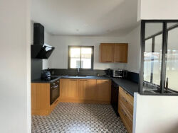 Située au calme, cette belle maison neuve attend ses futurs locataires.Elle est joliment meublée, parfaitement exposée et bien disposée.Proche des commerces, des écoles et des arrêts de bus. Elle possède trois chambres, 2 wc et un garage.Elle sera libre à compter du 10 novembre 2025.Jardin sans entretien, chauffage par pompe à chaleur.