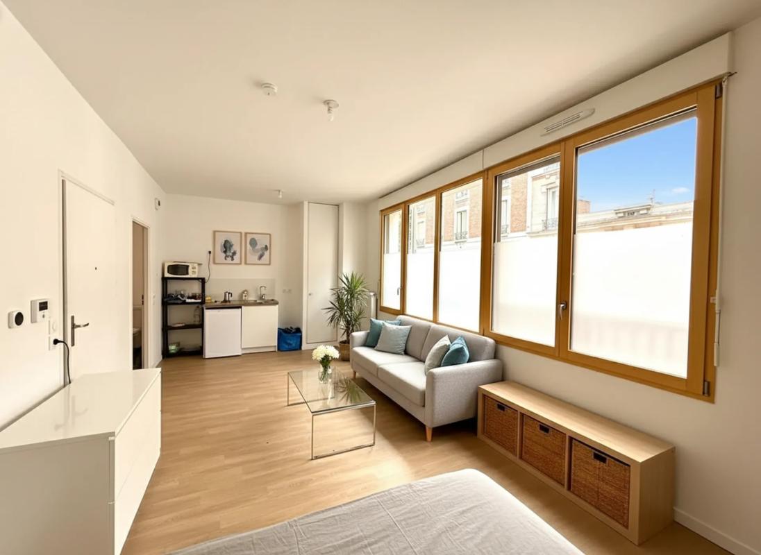 À découvrir dès maintenant, l'agence ERA Immobilier a le plaisir de vous proposer un superbe appartement idéalement situé boulevard Marcel Samba, au coeur de Saint-Denis. Ce bien d'exception bénéficie d'un environnement privilégié, à proximité immédiate du métro Ligne 13 « Porte de Paris », de la gare de Saint-Denis accessibles en seulement cinq minutes à pied et de l'ensemble des commerces et commodités du centre-ville.Installé au sein d'une copropriété ancienne, parfaitement entretenue et pleine de charme, l'immeuble dispose d'un ascenseur, un atout rare pour ce type de bien.L'appartement, situé au 5? étage et exposé ouest, profite d'une très belle luminosité et d'un agencement optimal. L'entrée distribue le séjour ainsi que la salle d'eau. Le séjour mène à une cuisine fermée de bonne taille, entièrement équipée, offrant une superbe vue dégagée sur un parc. La chambre, spacieuse, assure un confort total au quotidien.Le cadre de vie est renforcé par un accès immédiat au tramway T8, au pied de l'immeuble : en une seule station, vous rejoignez la gare de Saint-Denis ou le métro, idéal pour des déplacements rapides sans effort.Ce bien allie le charme de l'ancien, un confort moderne et un emplacement recherché. Une opportunité rare sur le secteur.